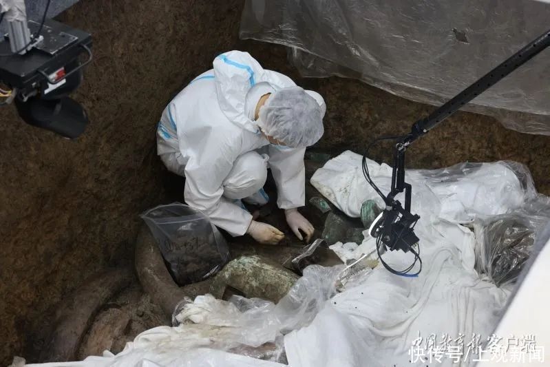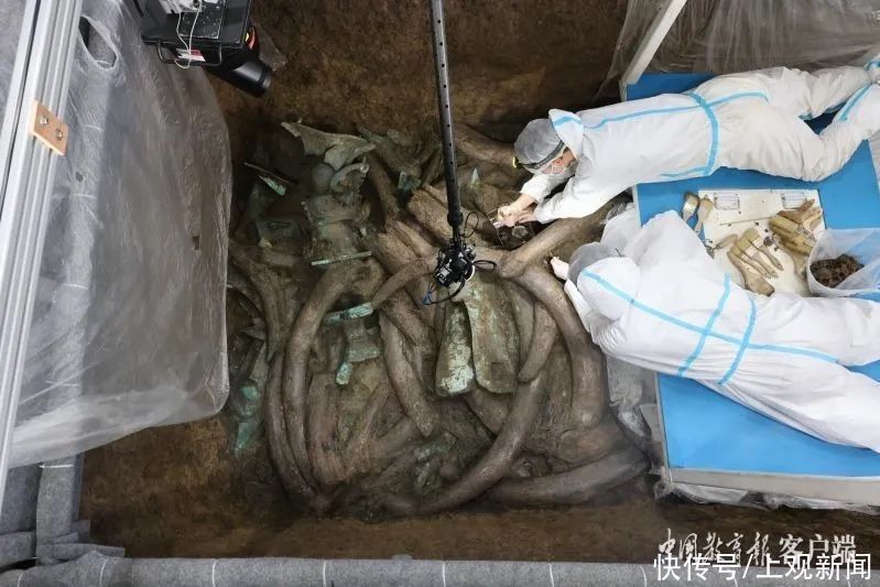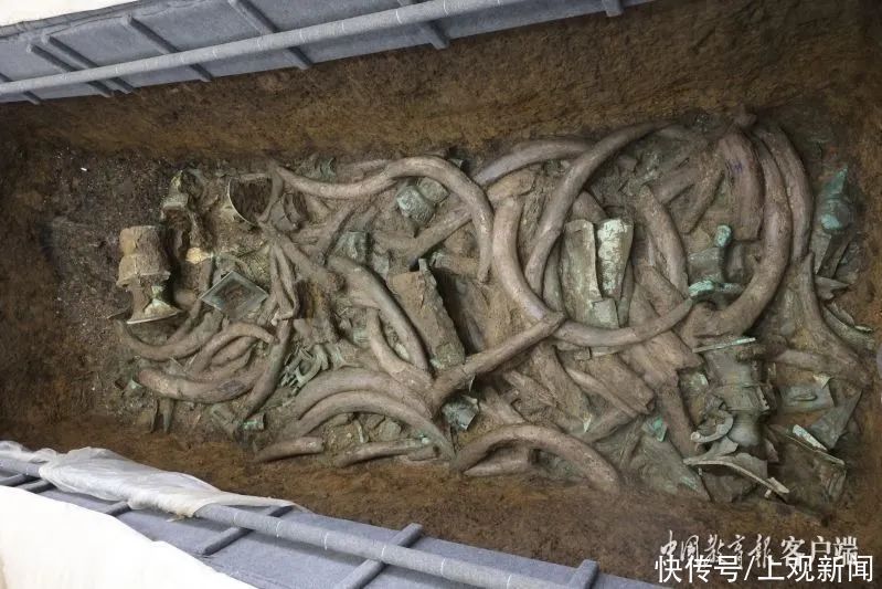 上海大学挖掘的3号坑出土的文物全景 张煦 摄